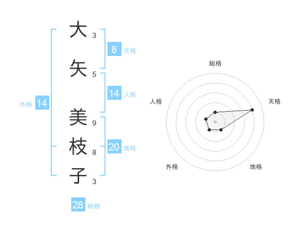 大矢 美枝子さんを姓名の画数から五運を鑑定