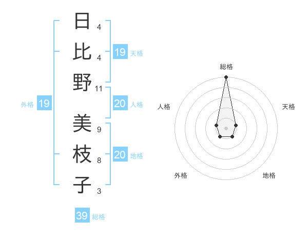 日比野 美枝子さんの総格は39画の5点!