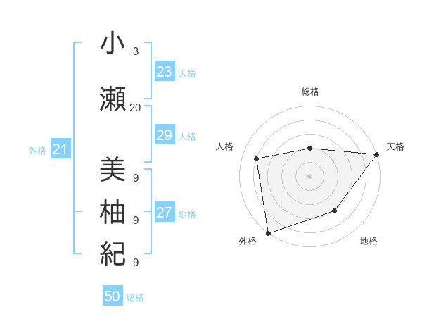 小瀬 美柚紀さんを姓名の画数から五運を鑑定