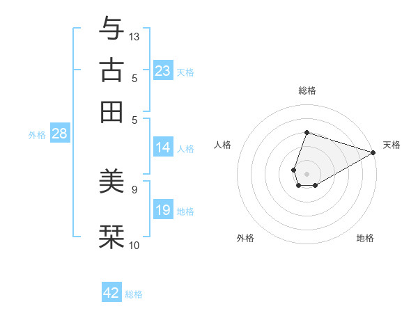 与古田 美栞さんの天格は23画の5点!