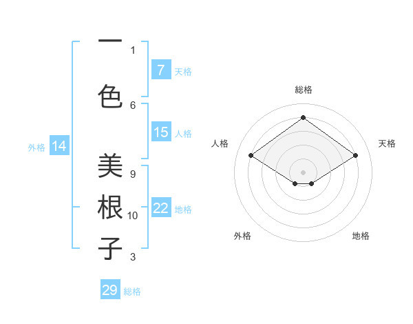 一色 美根子さんの総格は29画の4点