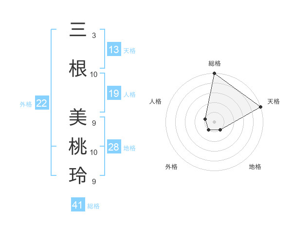三根 美桃玲さんを姓名の画数から五運を鑑定