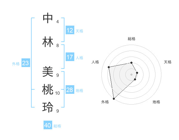 中林 美桃玲さんを姓名の画数から五運を鑑定