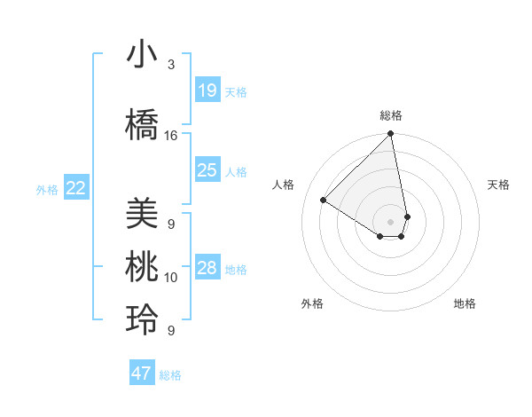小橋 美桃玲さんを姓名の画数から五運を鑑定