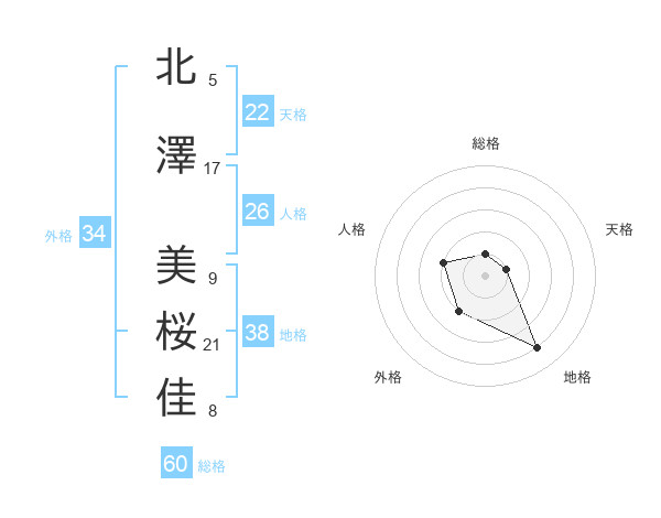 北澤 美桜佳さんを姓名の画数から五運を鑑定