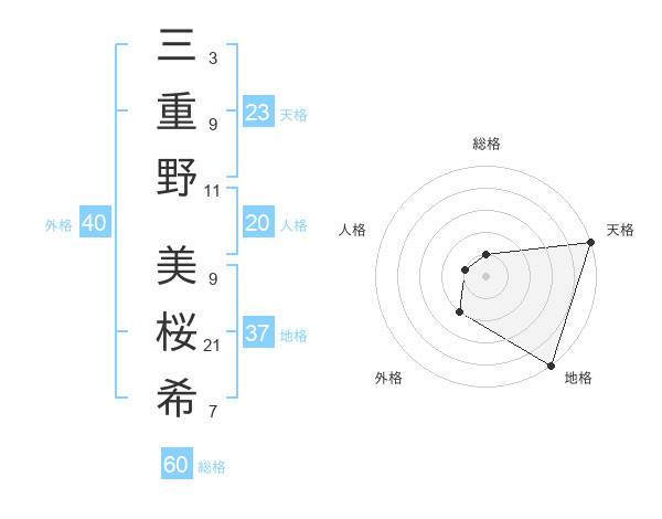三重野 美桜希さんを姓名の画数から五運を鑑定