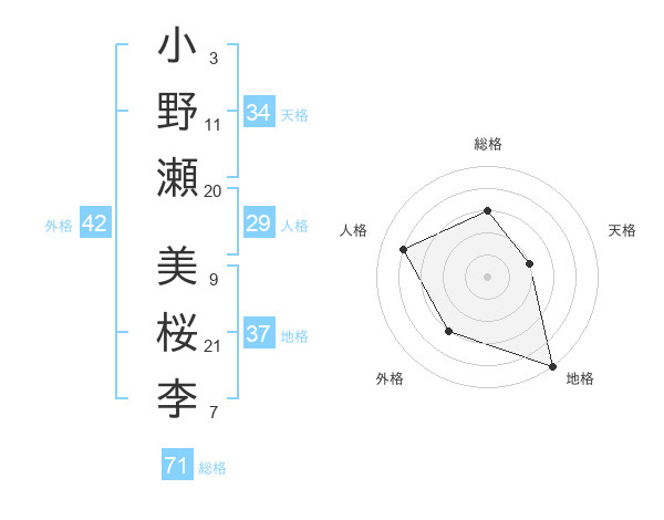 小野瀬 美桜李さんの総格は71画の3点!