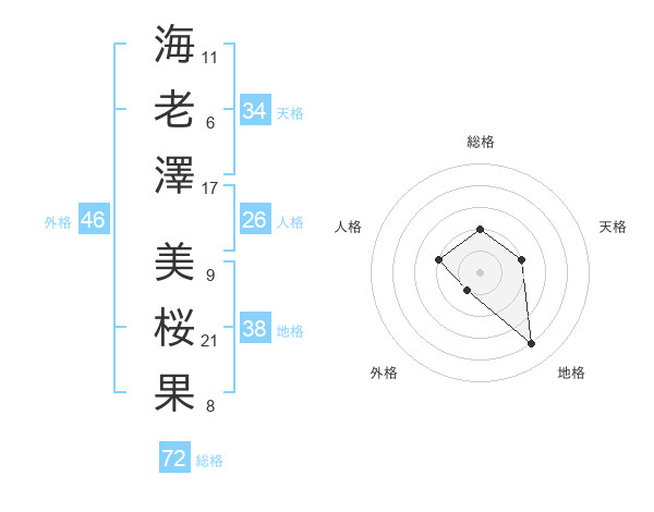 海老澤 美桜果さんの外格は46画の1点!