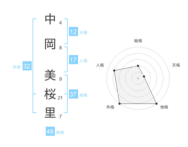 中岡 美桜里さんの地格は37画の5点!