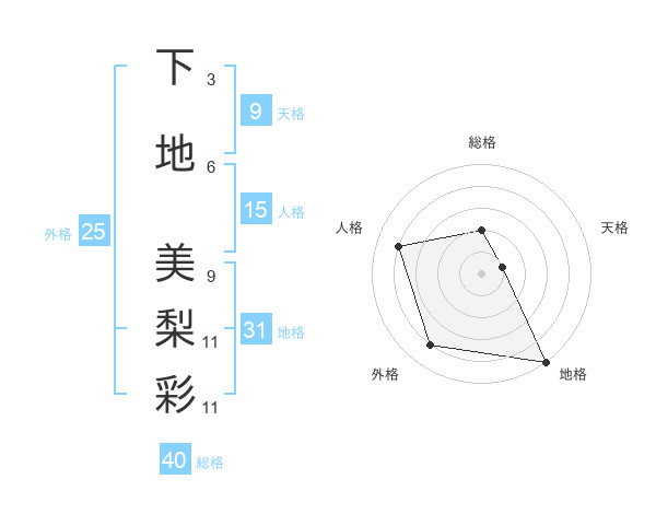 下地 美梨彩さんの総格は40画の2点!
