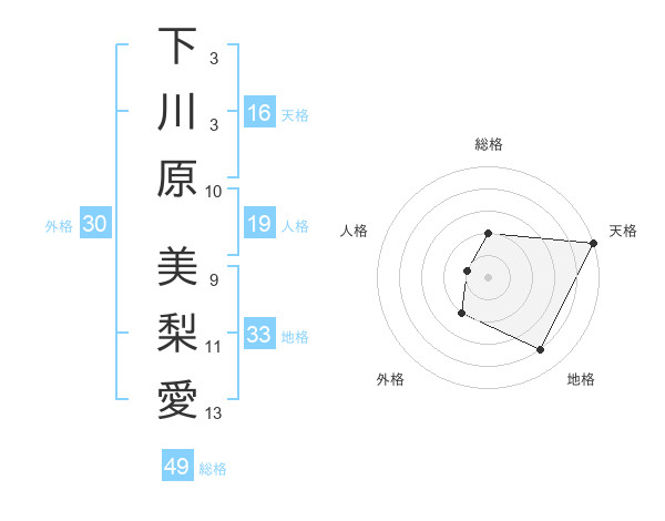 下川原 美梨愛さんの天格は16画の5点