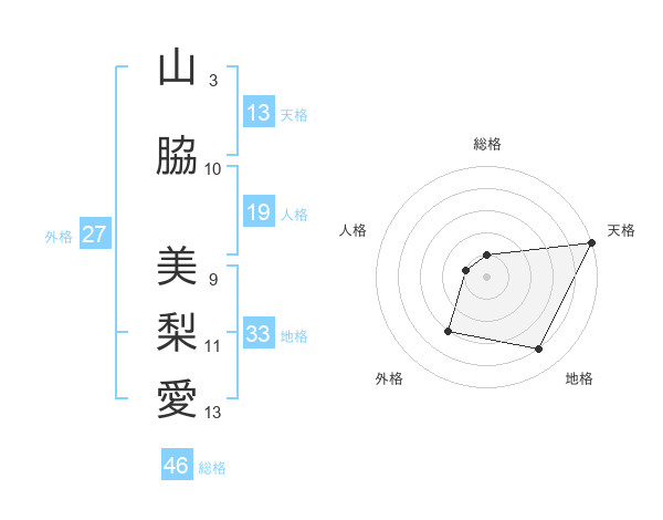 山脇 美梨愛さんを姓名の画数から五運を鑑定