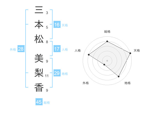 三本松 美梨香さんを姓名の画数から五運を鑑定