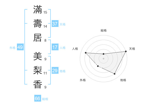 滿壽居 美梨香さんの天格は37画の5点!