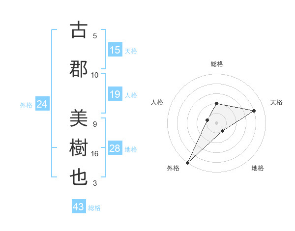 古郡 美樹也さんを姓名の画数から五運を鑑定