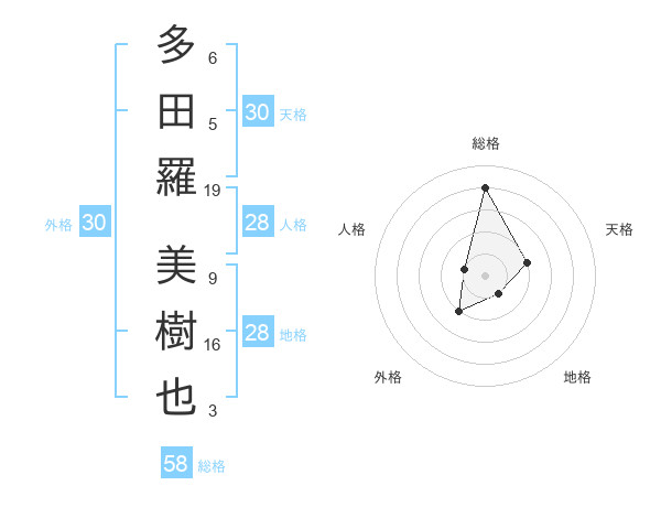 多田羅 美樹也さんを姓名の画数から五運を鑑定