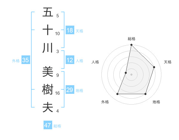 五十川 美樹夫さんを姓名の画数から五運を鑑定