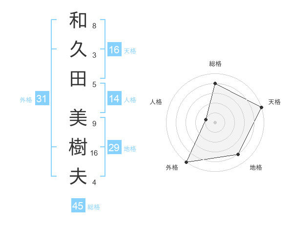 和久田 美樹夫さんの外格は31画の5点!
