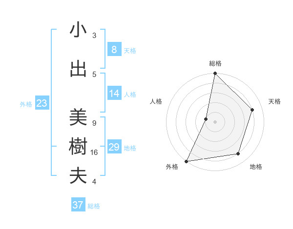 小出 美樹夫さんの総格は37画の5点!