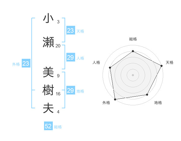 小瀬 美樹夫さんを姓名の画数から五運を鑑定