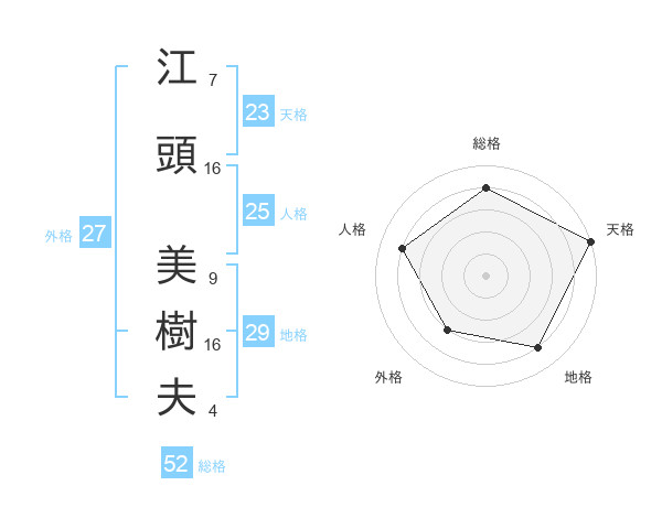 江頭 美樹夫さんを姓名の画数から五運を鑑定