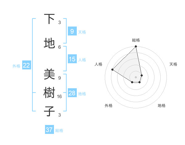 下地 美樹子さんを姓名の画数から五運を鑑定