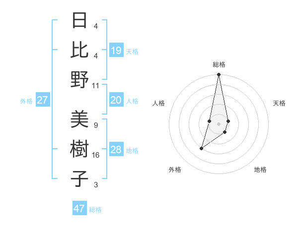 日比野 美樹子さんを姓名の画数から五運を鑑定