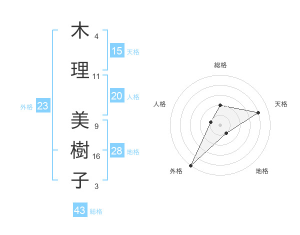 木理 美樹子さんの外格は23画の5点