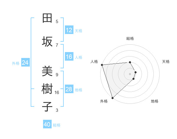 田坂 美樹子さんを姓名の画数から五運を鑑定