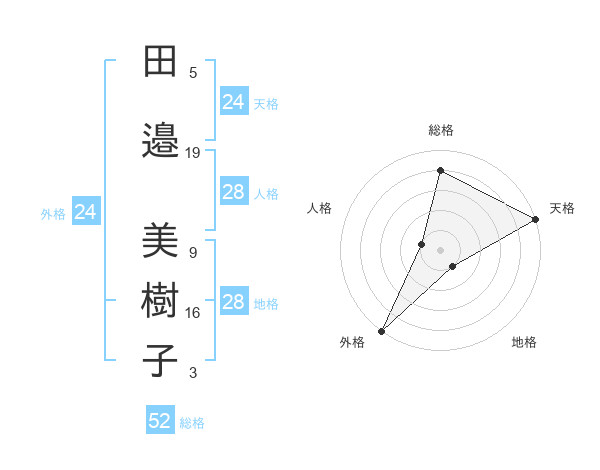 田邉 美樹子さんを姓名の画数から五運を鑑定