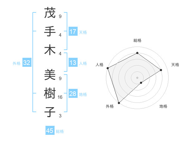 茂手木 美樹子さんの天格は17画の4点!