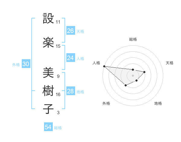 設楽 美樹子さんを姓名の画数から五運を鑑定