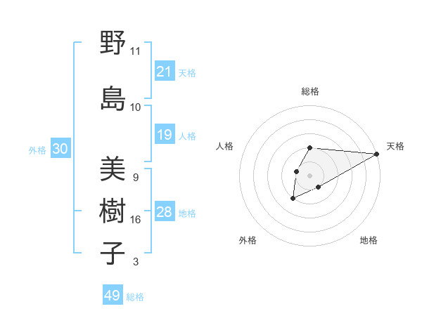 野島 美樹子さんを姓名の画数から五運を鑑定