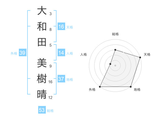 大和田 美樹晴さんを姓名の画数から五運を鑑定