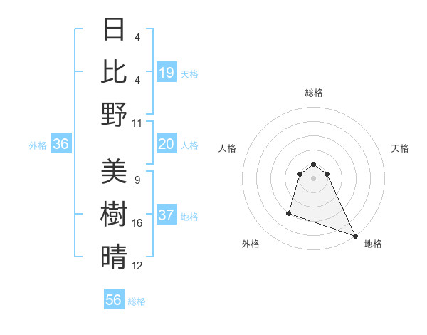 日比野 美樹晴さんの地格は37画の5点!