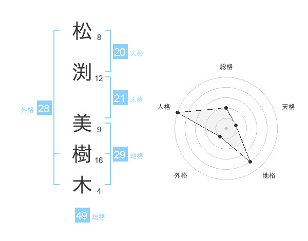 松渕 美樹木さんの総格は49画の2点
