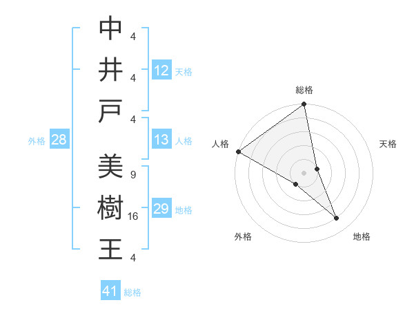 中井戸 美樹王さんの総格は41画の5点!