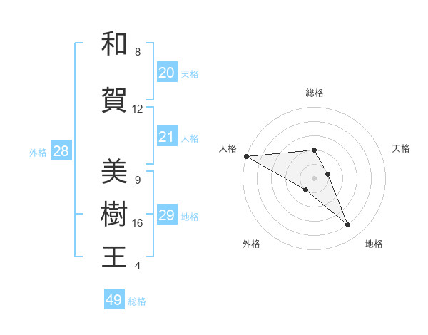 和賀 美樹王さんを姓名の画数から五運を鑑定