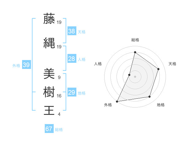 藤縄 美樹王さんの総格は67画の4点!