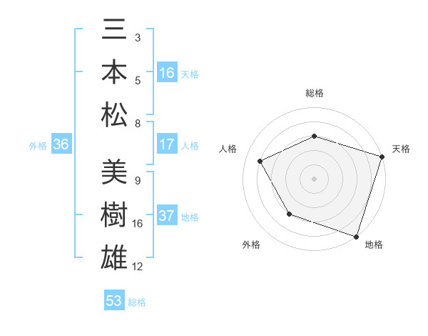三本松 美樹雄さんの総格は53画の3点!