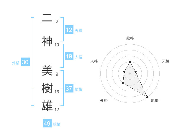 二神 美樹雄さんを姓名の画数から五運を鑑定