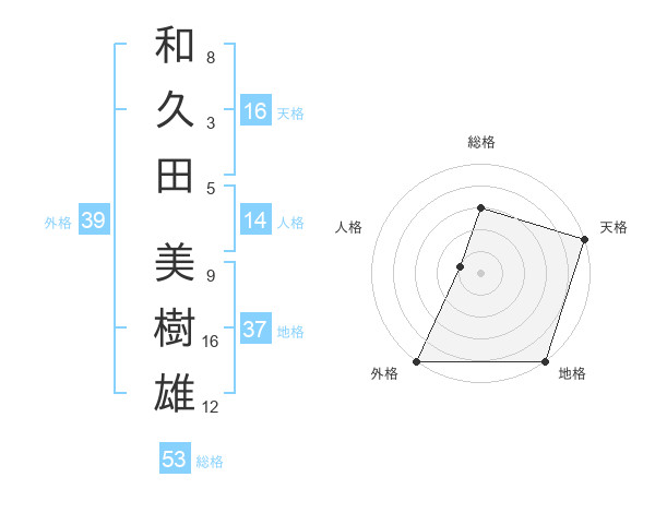 和久田 美樹雄さんを姓名の画数から五運を鑑定