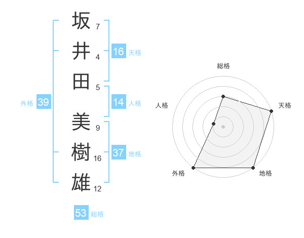 坂井田 美樹雄さんを姓名の画数から五運を鑑定
