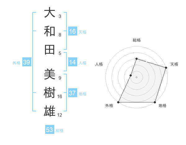 大和田 美樹雄さんを姓名の画数から五運を鑑定