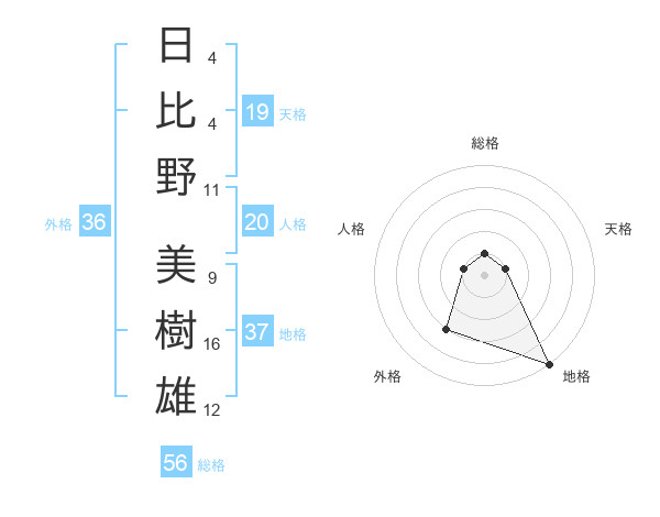日比野 美樹雄さんを姓名の画数から五運を鑑定