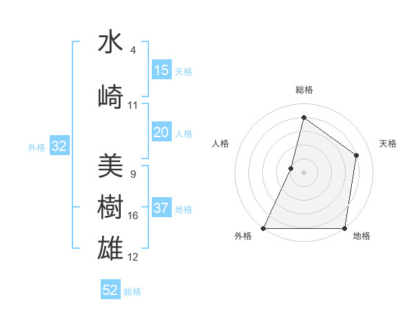 水崎 美樹雄さんを姓名の画数から五運を鑑定