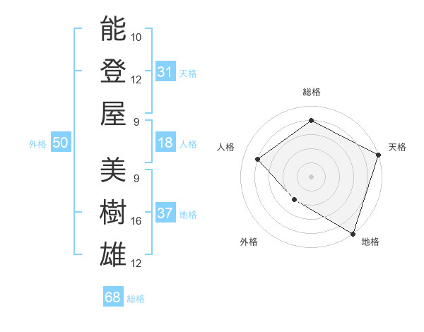 能登屋 美樹雄さんを姓名の画数から五運を鑑定