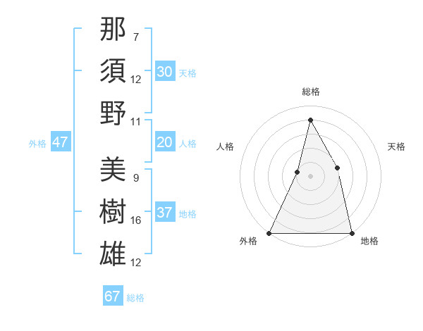那須野 美樹雄さんを姓名の画数から五運を鑑定