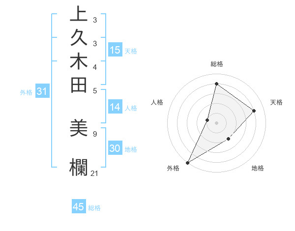 上久木田 美欄さんを姓名の画数から五運を鑑定