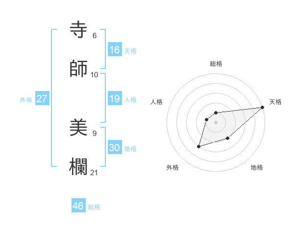 寺師 美欄さんの天格は16画の5点!